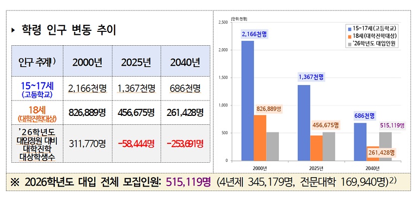 서울시교육청은 12월 10일(수) 고교교육과 대학 교육의 선순환 체제 구축을 위한 ‘미래형 대입 제도’를 제안했다. 이번 대입 제도 개편(안)에는 ▲학령 인구의 급격한 감소와 미래 역량 평가 요구에 대응하는 대입 제도 개선 필요성 ▲학교 교육 정상화와 과도한 경쟁 완화를 통한 사교육비 경감 ▲학생의 진로와 적성에 따른 맞춤형 교육이라는 고교학점제의 취지를 반영한 고교교육과 대학교육의 선순환 체제 구축을 위해 제안했다. 주요 내용으로는 ▲내신 평가 체제 개편 ▲대학수학능력시험 개편 ▲대입 전형의 개선 ▲고교교육 개혁 방안이다. 특히 고교학점제의 현장 안착을 위해 현 고1에 적용되는 2028학년도 대입 제도의 즉시 개선안을 포함하고 있으며, 2033학년도 대입과 2040학년도 대입 등 3단계로 개편(안)을 제시했다.