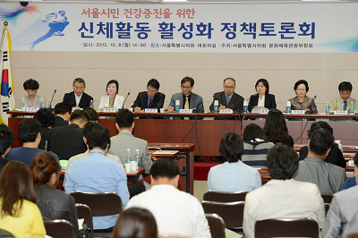 서울특별시의회 문화체육관광위원회(위원장: 김정재)는 10월 8일 오후 2시부터 의원회관 2층 대회의실에서 「서울시민의 건강증진을 위한 신체활동 활성화에 관한 정책토론회」를 개최하였다.
