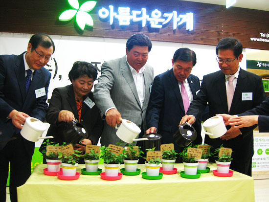 비영리공익재단 아름다운가게가 10일 서울 영등포구 (주)영등포뉴타운지하상가에서 홍명희 아름다운가게 이사장, 박종현 (주)영등포뉴타운지하상가 대표이사, 조길형 영등포 구청장, 신경민 민주통합당 국회의원, 오인영 영등포 구의회 의장 등이 참석한 가운데 ‘아름다운가게 영등포점’을 개점했다고 11일 밝혔다.