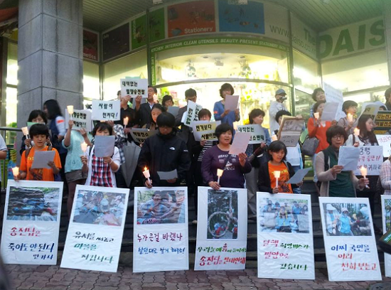 2013년 5월 20일부터 한국전력공사가 밀양 송전탑 공사를 강행하면서 부상자가 속출하고 있는 가운데 5월 28일(화) 오후 7시, 용인시 수지구 로열스포츠센터 앞에서 용인시민 80여명이 밀양시민을 지지하는 촛불을 밝혔다.