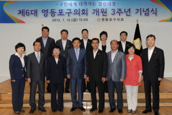 영등포구의회(의장 오인영)는 지난 12일 오후 3시 영등포아트홀 2층 전시실에서 제6대 영등포구의회 개원 3주년 기념식을 개최했다.