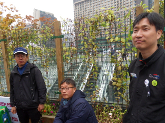 6일 오후 서울광장의 한 모퉁이에서 8일째 농성을 벌이고 있는 도시철도공사 노동조합 박찬민 총무국장(사진 오른쪽)은 “계속되는 기관사 자살에 대해 서울시가 ‘지하철 최적근무위원회를 만들었고 위원회에서는 7가지 권고안을 채택했다. 그러나 이 권고안은 그 어느 것 하나 수용되지 못했다.”며 “이제 박원순 서울시장의 결단이 필요하다”고 주장하고 권고안을 이행하지 않는 책임자 처벌과 재발방지 대책을 촉구했다.