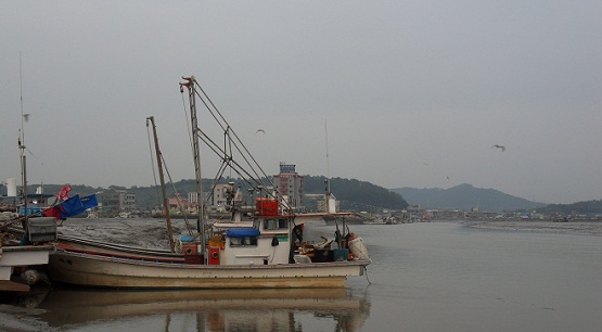 굴비 배송을 위한 작업으로 눈 코 뜰새 없지만 법성포 앞바다는 고요하기만 하다.
