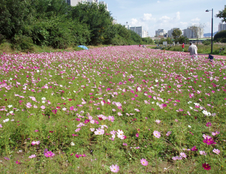 영등포구 문래 펌프장 아래 도림천에 가면 형형색색 만개한 코스모스들이 가을 정취를 물씬 느끼게 해준다.
