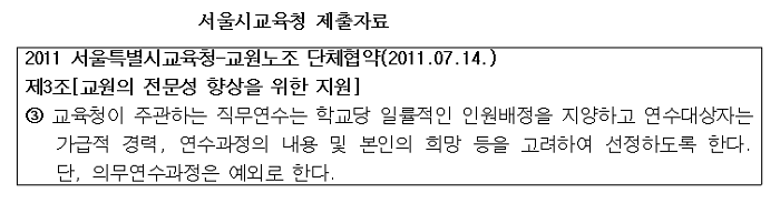 교육의 질이 교사의 질을 뛰어넘을 수 없기 때문에, 교사들은 수업과 학생들의 생활지도에 집중할 수 있어야 한다. 그리고 꼭 필요한 연수라면, 교사들의 자율성에 맡겨 본인들이 직접 선택해서 듣도록 여러 가지 지원을 해줘야한다. 학부모 연수도 마찬가지다. 학부모들에게 자발적으로 참여할 수 있는 다양한 프로그램들이 제시되고 지원되어야 하며, 억지로 인원을 할당하는 방식으로는 그 어떤 ‘교육’도 불가능하다. 또, 학부모들의 개인정보를 보고하라는 식의 과잉 행정에 대해서도 서울시교육청은 반드시 사과하고 개선해야한다. 교육의원인 필자는 지난 12~13일에 있었던 지역교육청 행정사무감사에서 지역청별 강제 인원 할당 현황을 요청했고, 일부 교육장은 “강제할당공문을 내려서 죄송하다”라며 사과까지 했다. 19일부터 시작된 본청 행감에서도 이 사안을 짚었다. 11개 지역교육지원청으로부터 받은 자료에 따르면, 2013년에 최고 21건에서 최저 7건의 인원할당 공문이 학교에 내려갔다.