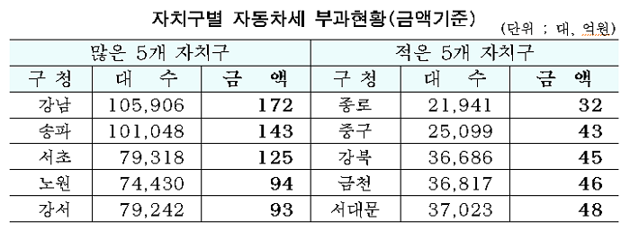 서울시는 시에 등록된 자동차 138만대에 대하여 2013년 제2기분 자동차세를 12월말 납부기한으로 납부 고지서를 일제히 우편발송 했다고 밝혔다.