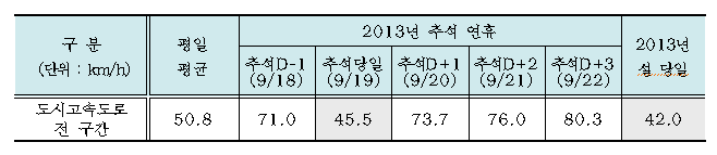‘설 당일’ 차례를 지내기 위해 이동하려면 08시 이전에 출발해야 정체를 피할 수 있고, 차례를 지낸 후인 12시~18시까지는 도시고속도로 전 구간이 혼잡하니 시내도로 등 우회도로를 이용해 이동하면 수월할 것으로 보인다.
