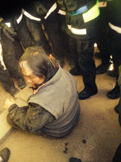 27일(월) 오후 밀양 송전탑 경과지 주민 50여명과 연대 시민 20여명, 그리고 고 유한숙 어르신의 유족(큰아들, 따님)이 고인의 영정을 들고 밀양시청 앞에서 분향소 설치 관련 밀양 시장 면담을 요구하는 과정에서 3차례의 크고 작은 충돌이 빚어져 주민 4명이 쓰러지고, 1명이 병원으로 후송됐다.