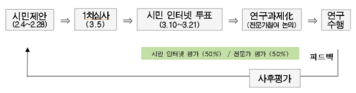 3.31(월) 당선자 발표 및 시상 후 본격적인 연구 수행 시민들의 실생활에 유용한 연구를 수행하기 위해 서울시 상수도연구원이 시민과 함께하는 연구과제를 공모한다.