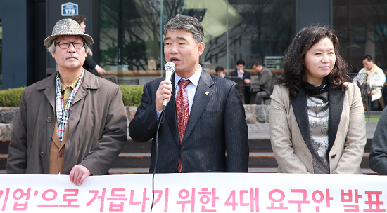 민생연대, 언론연대, 참여연대 등 시민사회단체들은 26일(수) KT 광화문 사옥 앞에서 기자회견을 열고 ▲KT 개인정보 유출 책임자 징계 및 보상, ▲갑을 문제의 조속한 해결, ▲이석채 체제 해고자 원상복구 ▲권력 및 ’친박 낙하산 근절‘ 등 KT 정상화를 위한 4대 요구안을 발표했다.