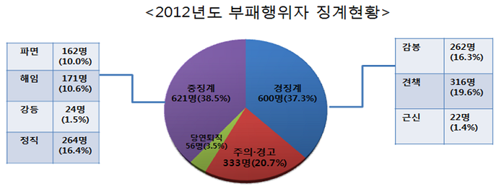 국민권익위가 지난 해 10월부터 약 4개월에 걸쳐 165개 공공기관에 대한 현지․서면 실태조사를 통해 나타난 문제점에 대해 ‘공공기관의 부패행위자 처벌 정상화 방안’을 마련하여 중앙부처, 지자체, 시․도 교육청, 공직유관단체 등 1,180여개 공공기관에 권고했다.