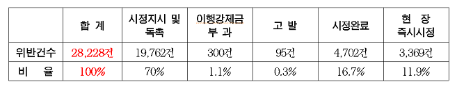 아울러 서울시는 이번 점검에서 적발돼 1차 시정명령을 받았으나 원상 복구하지 않은 건축물 1,934건에 대해서는 건축물 관리 대장에 ‘위반건축물 표기’를 하여 시정하지 않은 상태에서는 건축물 관련 인․허가를 할 수 없도록 조치했다.