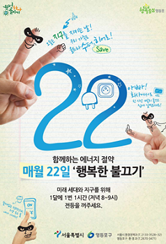 영등포구(구청장 조길형)는 생활 속 에너지 절약 실천을 위해 ‘행복한 불끄기’캠페인을 적극적으로 전개하고 있다고 밝혔다.