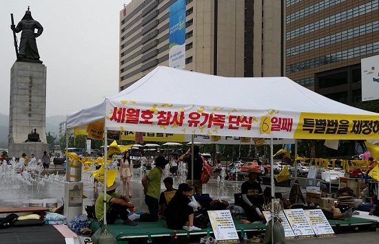 한편 서울 광화문광장 이순신 장군 동상 앞에서 단식 농성을 벌이고 있는 유가족들은 19일(토) 오후부터 세월호 가족단식을 세월호유가족 단식으로 명칭을 바꾸고 6일째 단식농성을 이어가고 있다.