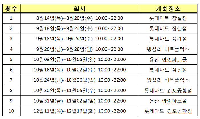 서울시가 중소기업과 소상공인의 판로개척을 돕고, 내수소비를 촉진시키기 위해 서울상공회의소·롯데마트와 함께 8월 14일(목)부터「서울시민과 함께하는 중소상공인 행복나눔 판매전」을 롯데마트 잠실점을 시작으로 10회에 걸쳐 릴레이로 개최한다고 밝혔다. 첫 ‘행복나눔 판매전’은 14일(목)~20일(수)까지 롯데마트 잠실점에서 열리며, 이어 롯데마트 중계․김포공항점, 왕십리 비트플렉스, 용산아이파크몰 등에서 진행될 계획이다.