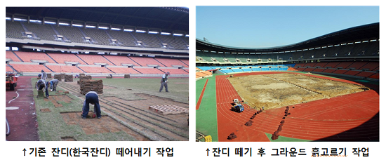 서울시특별시 체육시설관리사업소(소장 송두석)는 1984년 난지형잔디(한국잔디)로 조성된 올림픽주경기장 잔디그라운드를 한지형잔디(서양잔디)로 11월까지 교체를 완료한다고 밝혔다. 기존 한국잔디는 잔디 잎이 거칠어 선수들의 부상 우려 및 경기전술에 지장이 있어 축구경기 유치가 곤란했다. 이에 축구계의 의견 등을 들어 잔디 잎이 부드럽고 촉감이 좋은 서양잔디로 교체를 결정했다.