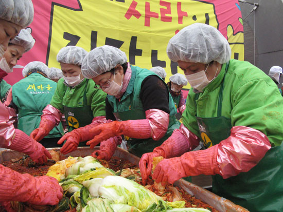 서울시새마을부녀회(회장 최광자)가 8일 여의도 산업은행 본점 마당에서 동절기를 대비해 소외된 이웃에게 ‘1만포기 김장담기’ 행사를 가졌다.