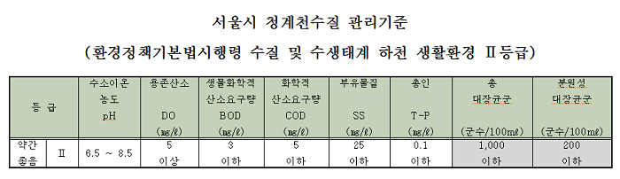 청계천 수질을 생활용수 또는 수영 용수로 사용할 수 있도록 관리한다고? 누가?