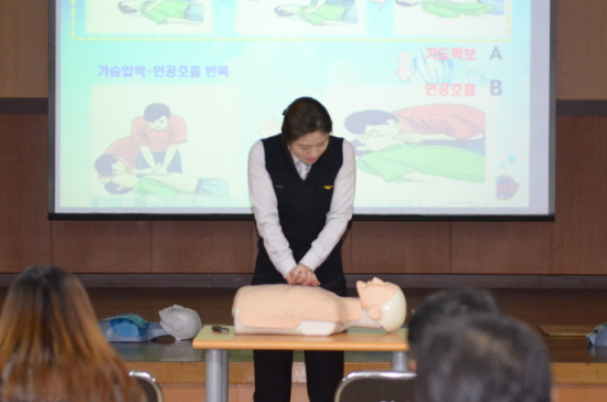 영등포소방서(서장 이홍섭)가 9일 오후 영등포소방서 4층 강당에서 다중이용업소 관계자 30여 명을 대상으로 최근 화재 동영상 시청, 소방시설 관리요령, 소화기, 옥내소화전 사용법 및 심폐소생술 교육 등 안전교육을 실시했다. (사진제공: 영등포소방서)
