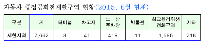 터미널, 차고지 등 2,662개소 ‘중점공회전제한장소’ 지정해 단속강화 앞으로 자동차공회전을 2분 이상 지속할 경우 과태료가 부가된다.