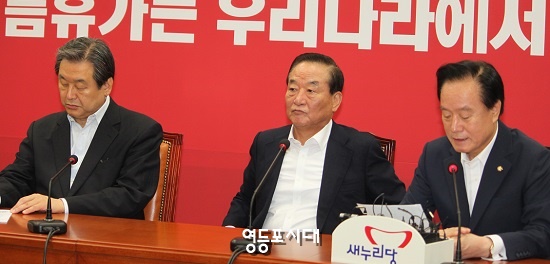 15일 국회에서 열린 새누리당 최고중진연석회의에 참석한 이병석 의원(사진 오른쪽)은 차분한 어조로 작심한 듯 발언을 쏟아냈다.