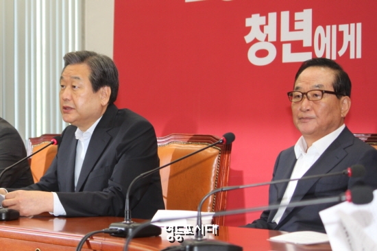새누리당 김무성 대표(오른쪽 사진 왼쪽)는 8월 31일 국회에서 최고위원회의를 열고 본회의 개최가 무산된 것에 대해 야당을 거세게 비판했다. 김무성 대표는 “서비스산업발전기본법과 관광진흥법, 국제의료사업지원법 등을 대표적인 일자리 창출법”이라고 주장하고 “서비스산업발전기본법이 의료영리화를 위한 의도라는 실체 없는 주장을 하면서 3년째 통과시켜주지 않고 있다”고 단호히 비판했다. 9월 2일(수) 제19대 마지막 정기국회가 시작되는 것과 관련해 “지금처럼 야당이 반대를 위한 반대만 일삼는다면 국민의 얼굴은 4생이 아닌 사색이 된다는 사실을 인식해주길 바란다”고 비판의 강도를 높인 김무성 대표는 새정치민주연합을 향해 “대한민국의 책임 있는 제1 당답게 국민을 위해서 민생에는 통 크게 협조해주고, 정치적 쟁점은 정치적으로 푸는 운용의 묘를 발휘해주길 바란다”며 정기국회 운영에 대한 협조를 당부했다.