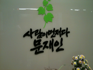 "정직한 대통령 국민의 대통령 문재인 원합니다" " 다양한 지지자들의 염원 선거에 출마한 후보자의 당락여부는 캠프 분위기를 살펴보면 어느정도 예측할 수 있다. 당선자들의 공통점 중 하나가 선거기간내 캠프 분위기가 매우 좋았다는 것. 이와 반해 당선권에서 거리가 먼 후보이거나 뒤지고 있는 후보 캠프의 경우 한산하거나 선거운동원들이 있다고 하더라도 염불보다는 젯밥에 관심이 많은 것을 볼 수 있었다.