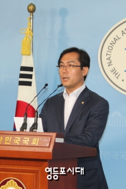 새누리당 김영우 수석대변인(오른쪽 사진)은 10월 19일 현안 관련 브리핑에서 “문 대표, 근거 없는 교과서 연좌제 주장은 사이비 진보임을 자인하는 것”이라고 전날 있었던 문재인 대표의 발언에 대해 비판했다.