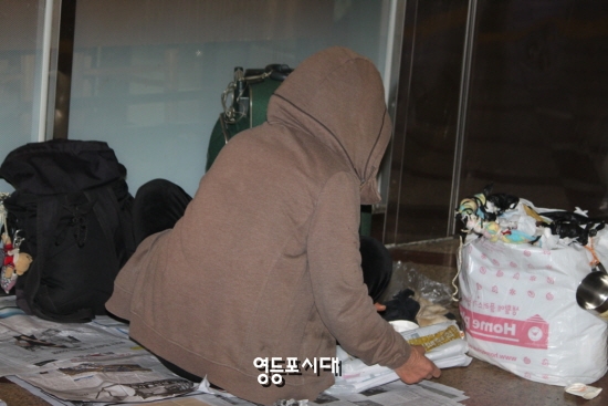 2016년 1월 1일 아침 6시 40분, 영등포역에서 침낭과 바닥에 깔린 신문을 정리하는 노숙인(50대 후반이라고 밝힌) 이*희 씨를 만나 대화를 나눌 수 있는지 조심스럽게 묻자 “사람이 무섭다”며 경계심을 높인다.