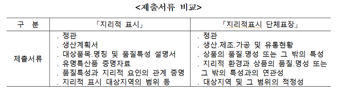 정부가 운영하는 지역 브랜드 등록제도인 ‘지리적 표시’와 ‘지리적표시 단체표장’의 신청 과정에서 신청 서류를 따로따로 준비해야 하는 불편함을 해소되고 재정 낭비 요인이 제거될 전망이다.