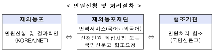 권익위는 재외동포 포털사이트 내 ‘재외동포신문고’라는 명칭으로 신설된 이번 통합서비스 제공으로 주민등록이 없는 외국 국적 재외동포도 편리하게 국민신문고에 민원을 신청하고 처리결과를 확인할 수 있게 했다.