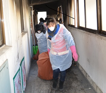 4일 화재피해 주민에게 복구지원 및 구호품 전달