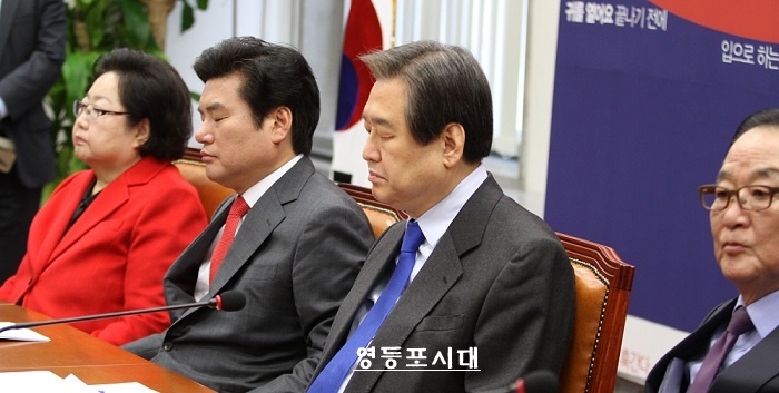 *“전화를 받는 사람은 김무성 대표를 죽여버릴 만한 위치에 있는 사람” *김무성 대표, 발언 없이 눈 감은 채 회의 마쳐 3월 9일(수) 국회에서 열린 새누리당 최고중진연석회의 참석한 김무성 대표는 회의가 진행되는 동안 시종일관 눈을 감거나 고개를 숙이는 등 불편한 심정을 나타냈지만 끝내 발언에 나서지는 않았다.