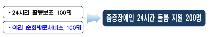 특히, 서울시는 움직임이 어려운 중증장애인이 돌봄 사각지대에 놓이지 않도록 지난해 최중증장애인 24시간 활동보조서비스 100명 지원에 이어 야간 순회방문 서비스까지 추가로 확대하여 중증장애인을 24시간 보호한다는 계획이다.