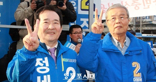 20대 총선 공식 선거운동이 개시되는 첫날인 31일(목) 오전 더불어민주당 김종인 비상대책위원회 대표는 종로구 동묘역 앞에서 출근길 시민들을 상대로 정세균 후보의 지지를 호소했다.