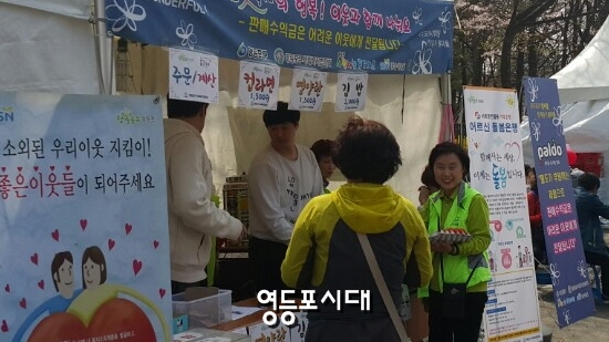 영등포구 사회복지협의회에는 ‘2016 영등포 여의도 봄꽃축제’ 기간 동안 식품판매행사를 통해 15,676,660원의 후원금이 조성되었다고 14일(목) 밝혔다. 매년 봄꽃축제장을 찾은 시민을 대상으로 먹거리 판매를 진행해온 영등포구 사회복지협의회는 먹거리 판매를 통해 얻은 수익금을 어려운 이웃에게 전달해 왔다. 이번 먹거리 판매는 영등포구 사회복지협의회 관계자와 사회복무요원, 자활 근로, 장애인 일자리사업 근로자, 좋은 이웃들 자원봉사자 등 180여 명이 함께했으며 수익 목적이 아닌 시민 편의 제공을 최우선으로 하여 시중에 유통되는 가격으로 컵라면, 영양이란, 김밥 등 완제품만을 판매했다. 영등포구 사회복지협의회 정진원 회장은 봄꽃축제를 통해 식품판매를 진행할 수 있도록 아낌없이 지원해준 영등포문화재단과 영등포구 관계자에게, 신금자 사무국장은 컵라면을 기부해준 해당 기업 임직원과 식품판매에 힘을 보탠 ‘좋은 이웃들’ 자원봉사자에게 감사의 마음을 전했다.