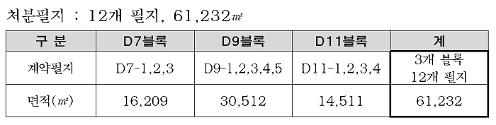 처분 필지는 12개 필지로 61,232㎡이다.