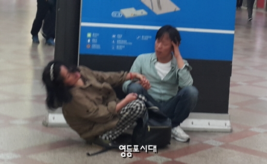 비가 내린 5월 3일 오후 영등포역 공용 통로와 영등포역 ‘맞이방’으로 노숙자가 하나둘 모이기 시작했다. 남.녀 노숙자를 가리지 않고 술에 취해 몸을 가누지 못한 상태에서 서로 말싸움과 몸싸움을 벌이는 광경이 목격됐다.