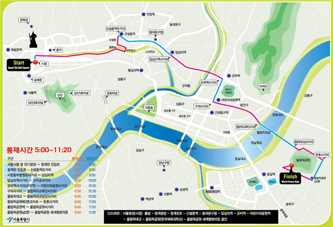 또한, 5천여명의 여성 러너들이 참가하는 마스터스 부문 참가자 대부분이 20대(평균 연령 28세)로 우리나라에서 개최되고 있는 각종 마라톤대회 사상 가장 젊은 연령대의 하프마라톤대회로 기록될 예정이며, 연예계 운동 매니아인 복싱배우 이시영과 스피카 멤버인 김보형 등도 이날 5천여명의 여성 러너들과 함께 하프코스에 도전한다. 서울시는 이번 대회를 계기로 침체된 여자마라톤의 진흥을 위해 대한육상경기연맹과 나이키사와 공동으로 지속적으로 개최하여 우리나라 여성마라톤이 활성화될 수 있도록 적극 협조·지원해 나갈 계획이라고 밝혔다. 서울국제우먼스하프마라톤대회가 진행되는 22일(일)엔 마라톤 주요구간이 오전 5시부터 11시20분까지 단계별로 교통통제가 이뤄진다. 교통이 통제되는 구간은 마라톤 주요구간인 서울광장 주변(광화문광장 방향), 청계천, 신설동역오거리, 답십리역, 어린이대공원사거리, 구의사거리, 올림픽대교, 올림픽공원북2문교차로, 둔촌사거리, 올림픽공원사거리, 올림픽공원남2문, 올림픽공원 평화의 문 광장에 이르는 구간으로, 오전 5시부터 11시 20분까지 단계별로 교통통제가 이루어진다. 구체적인 교통통제 시간과 교통통제에 따른 우회구간 등 자세한 사항은 120다산콜센터(국번없이 120), 서울시청 홈페이지(http://www.seoul.go.kr)를 참고하면 된다. 서울시는 서울지방경찰청, 소방재난본부, 민간의료봉사단, 긴급의료기관을 연계하는 응급구조체계를 갖춰 이번 대회가 사고 없이 안전하게 치러질 수 있도록 할 계획이다.