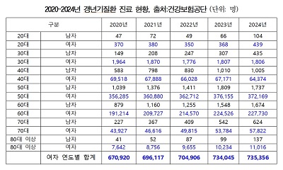 50대 여성, 최근 5년간 평균 36만 명 이상이 갱년기 질환 진료받아