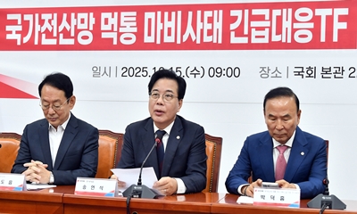 국민의힘은 국가 전산망 먹통 마비 사태 긴급 대응 TF를 구성하고 위원장에 박덕흠 의원을 임명했다. 10월 15일 국회에서 국가 전산망 먹통 마비 사태 긴급 대응 TF 임명장을 수여한 송원석 원내대표는 “오늘 우리는 대한민국의 행정 시스템이 멈춰 서는 초유의 국 2025-10-15 15:27:34
