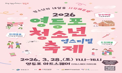 영등포구가 새학기를 맞은 청소년들의 소통과 교류를 위해 3월 28일 영등포아트스퀘어와 타임스퀘어 광장에서 청소년 축제 ‘영스티벌’을 개최한다. 이번 축제는 새로운 환경에 적응하는 청소년들이 서로의 꿈을 응원하고 긍정적인 에너지를 나눌 수 있도록 마련된 2026-03-26 08:59:45
