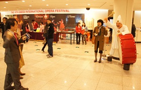 대구국제오페라축제(조직위원장 김신길)가 올해로 10주년을 맞아 제일모직 울타리에 환경그래픽 디자인 제작물을 설치한 것. 디지털 매핑 출력으로 크기가 가로 90m, 세로 3m의 초대형 구조물이다. 대구예술대학교 공공디자인센터(센터장 이의철/시각디자인과 교수)와 산학 협력으로 만든 이 구조물은 기획 및 제작 설치까지 5개월에 걸쳐 진행됐다. 대구국제오페라축제가 지난 10년 간 선보인 메인 작품들의 공연명을 디자인의 주요 콘셉트로 잡고 타이포그래피를 중심으로 표현했다. 오페라 <아이다>, <카르멘>, <투란도트> 등 공연명을 타이포의 크기별로 디자인하여 리듬감을 주고, 중간 중간에 오페라 주인공들의 모습들을 가미해 전체적으로 세련된 느낌을 주도록 했다. 컬러는 검정과 빨강으로 구성해 강렬하면서도 간결하게 표현했는데, 서체는 오페라의 본고장 이탈리아를 대표하는 보도니체를 활용했다. 축제조직위원회는 지난 축제 기간 동안 오페라축제의 주요 공연장인 대구오페라하우스 앞의 울타리 디자인을 외부업체를 통해 진행해 오다, 올해 10주년을 맞아 의미 있는 상징물로 제작하기 위해 대구예술대학교와 함께 하게 됐다. 대구예술대학교 디자인과 학생들을 중심으로 구성된 공공디자인센터에서 기부한 디자인을 채택하게 된 것. 환경그래픽 디자인을 지도한 이의철 교수는 “참여 학생들은 자신들이 그 동안 학교에서만 배운 실력을 실무현장에서 직접 체험해 봄으로 자부심과 자신감이 가지게 됐다”고 말했다. 또한 대구오페라하우스 로비 중앙에 세계적인 테너인 엔리코 카루소의 입체조형물이 자리 잡고 있는데, 2m가 넘는 이 작품도 대구예술대학교의 학생들이 제작한 것(지도교수 손파). 공연장을 찾는 관객들에게 포토존으로 큰 인기를 얻고 있다. 이 프로젝트들을 함께 기획하고 총괄한 박병철 입학기획처장은 “재능을 문화와 사회에 기부함으로 학생들은 예술전문인으로서의 겸손함과 소통을 배울 수 있었고, 대학은 경쟁력 상승과 지역과 융합의 기반을 마련한 계기가 되었다”고 언급했다. 오페라축제 김성빈 집행위원장은 “대학에서 훌륭한 디자인을 기부해 줘서 10주년을 맞은 올해 축제의 분위기가 더욱 고조되었다”며 “특히 시민들에게 좋은 볼거리를 선사하고, 디자인을 접목한 오페라축제로 문화 도시 경쟁력을 얻게 되었다”고 말했다.