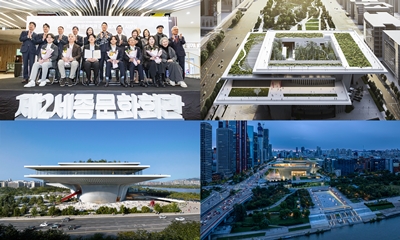 서울시가 한강과 여의도공원을 잇는 문화 랜드마크가 될 ‘제2세종문화회관 건립 설계 공모’ 당선작으로 ‘디자인캠프문박디엠피’의 설계안을 최종 선정하고 11월 10일 오전 10시 세종문화회관 1층 세종라운지에서 시상식을 개최했다. 이날 행사에는 오세훈 서울시 2025-11-10 14:27:19