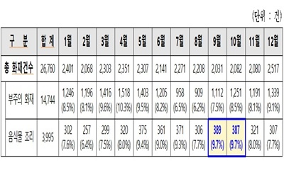서울시 소방재난본부(아래 소방재난본부)는 9~10월에는 추석 연휴가 끼어있어 명절 음식 준비 등 조리 과정에서 화재가 많이 발생할 수 있다며 주의를 당부했다. 소방재난본부는 지난 5년간 월별 화재 원인을 분석한 결과, 9~10월 ‘음식물 조리’ 중 화재가 집중 발생 2025-09-24 09:21:50
