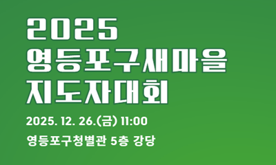 영등포구새마을회(회장 구춘회)는 12월 26일 영등포구청별관 5층 강당에서 ‘2025 영등포구 새마을지도자대회를 개최한다. 구춘회 회장은 이날 올 한 해 동안 펼친 활동과 새해 계획(활동 방향)에 대해 밝힐 것으로 예상된다. 2025-12-21 14:54:03
