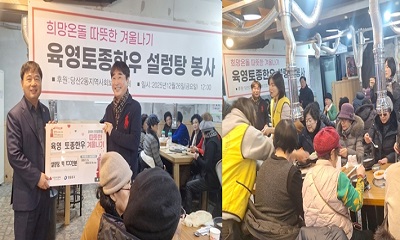 영하 10도의 한파 속에서 진행된 세밑 음식 나눔 봉사활동이 훈훈함을 전한다. 윤관식 당산2동 주민자치회 고문(육영한우 대표)은 12월 26일 자신이 운영하는 육영한우에서 ‘희망 온돌 따뜻한 겨울나기’ 육영토종한우 설렁탕 나눔 봉사활동을 펼쳤다. 당산2동 지 2025-12-26 15:40:06