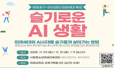 영등포구가 시립청소년미래진로센터에서 뇌 건강, 마음 건강, 인공지능(AI) 대비 전략 등 ‘미래세대 명사 특강’을 운영한다. 영등포구(구청장 최호권)는 “인공지능 시대를 살아가는 청소년들이 창의적 사고력과 주도적인 진로 역량을 키울 수 있도록 다양한 분야의 2025-11-04 17:41:17