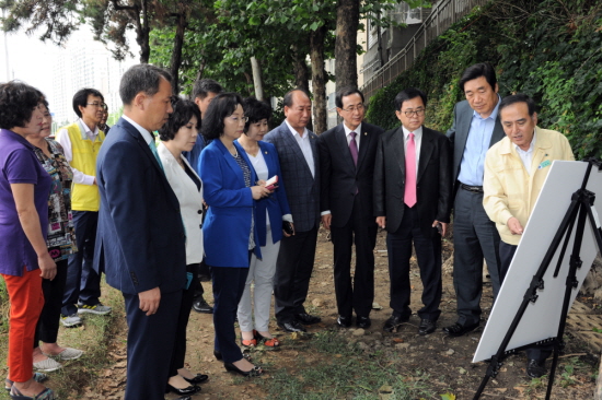 해당 석축은 여의대방로 61길에 인접한 높이 5m의 시설물로 최근 축대에 균열과 동공이 생기고 하수가 유출되어 일부 구간에 배부름 현상이 발생하는 등 주민 안전에 위협이 되고 있는 것으로 확인됐다. 영등포구의회 사회건설위원회 권영식 위원장과 위원 일동은 신길동 현장을 직접 방문해 문제가 있는 축대 균열 부분 및 하수 유출 현상이 발생하는 곳 등을 자세히 살폈다. 현장 설명에 나선 영등포구 관계자는 “맨홀 파손으로 인해 하수가 유출되어 동공이 발생한 상황으로, 보수․보강이 필요하지만, 보수 책임이 있는 소유주의 소재지 파악이 어려워 해결에 난항을 겪고 있다”라고 전하고 “서울시 시설안전 사각지대 발굴 모임인 ‘더 시민안전모임’에 이 건을 상정하여 사업비를 지원받거나 시 관련 부서에 예산을 신청하여 보수․보강할 계획이다”라고 밝혔다. 사회건설위원회 의원들은 구 관계자에게 “안전 사각지대에 놓인 시설물에 대한 점검에 전력을 기울여줄 것”을 당부했다. 사진 캡션 사회건설위원회 의원들은 구 관계자로부터 현장 상황에 대해 설명을 듣고 있다. ©영등포구의회