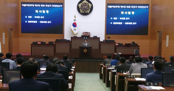 서울시의회 더불어민주당은 6월 23일 본회의장에서 열린 더불어민주당 대표의원 선출에서 재적 의원 74명 전원이 참석하여 1자 투표에서 재적 과반(37표)을 넘은 40표를 득표한 김종욱 의원(구로3)이 선출됐다. 김종욱 당선인은 투표에 앞서 “지방의원 보좌인력 법제화를 위한 지방자치법 개정안을 요구를 통하여 2017년 정기국회 때까지 관철할 것, 시의회가 서울시와 서울시교육청의 예산과 정책 결정 과정에 참여할 수 있도록 시스템을 만들겠다”고 정견발표를 통행 약속했다. 아울러, 이번 선출된 하반기 신임 대표의원은 2년의 임기 기간에 2017년 대선과 2018년 지방선거를 치르게 되는 만큼 중앙정치와 원활한 가교를 통해 소속의원들에 대한 실질적인 역할과 역량을 드높여 2017년 정권교체와 2018년 지방선거 승리의 선봉장이 될 것이라고 포부를 밝혔다. “대표의원으로 선출해 주셔서 감사드리고 더욱 겸손하고 더 낮은 자세로 소속 의원님들과 함께 힘차게 일해 나갈 것”이라고 소감을 밝힌 김종욱 신임 대표의원 당선자는 서울시의회 제8대 민주당 원내 정무 부대표와 제9대 전반기 더불어민주당 원내 수석부대표를 역임한 바 있다. 이번 더불어민주당 대표의원 후보자로 이승로 의원, 문상모 의원, 한명희 의원 등 모두 4명이 출마하였다. 6월 23일 본회의장에서 서울시의회 더불어민주당 후반기 대표의원에 선출된 김종욱 당선자가 당선인사를 하고 있다.